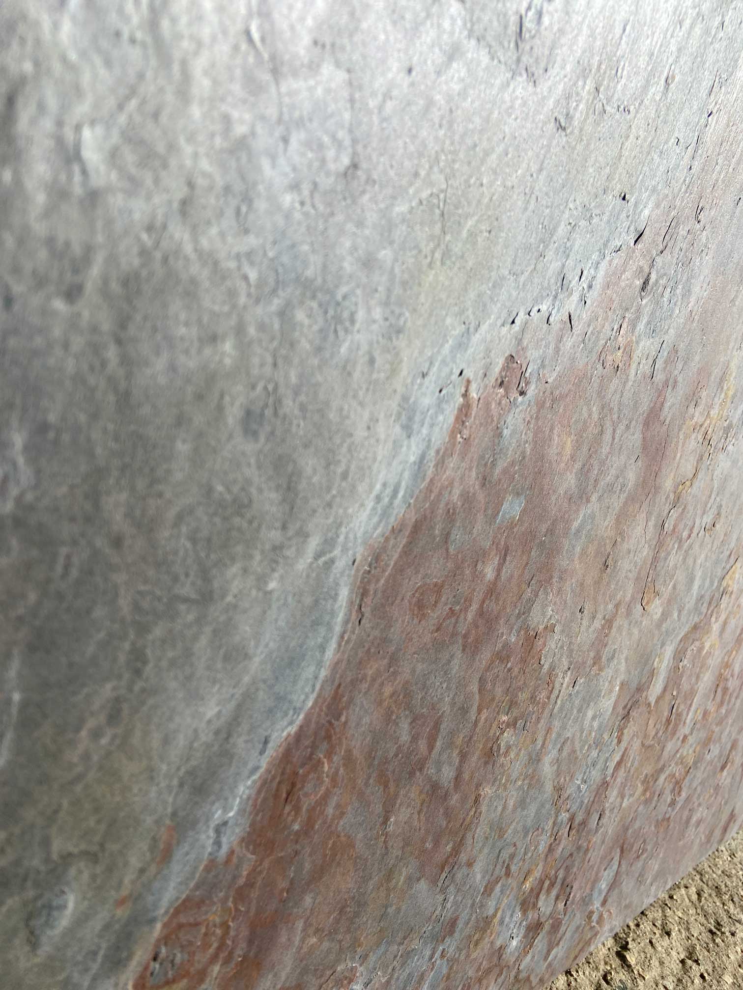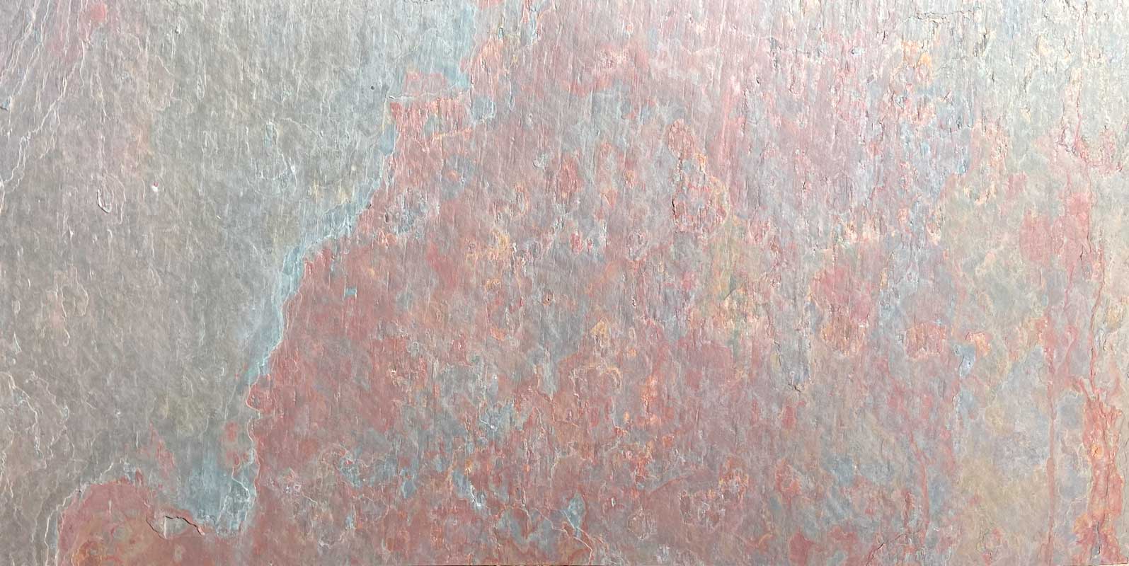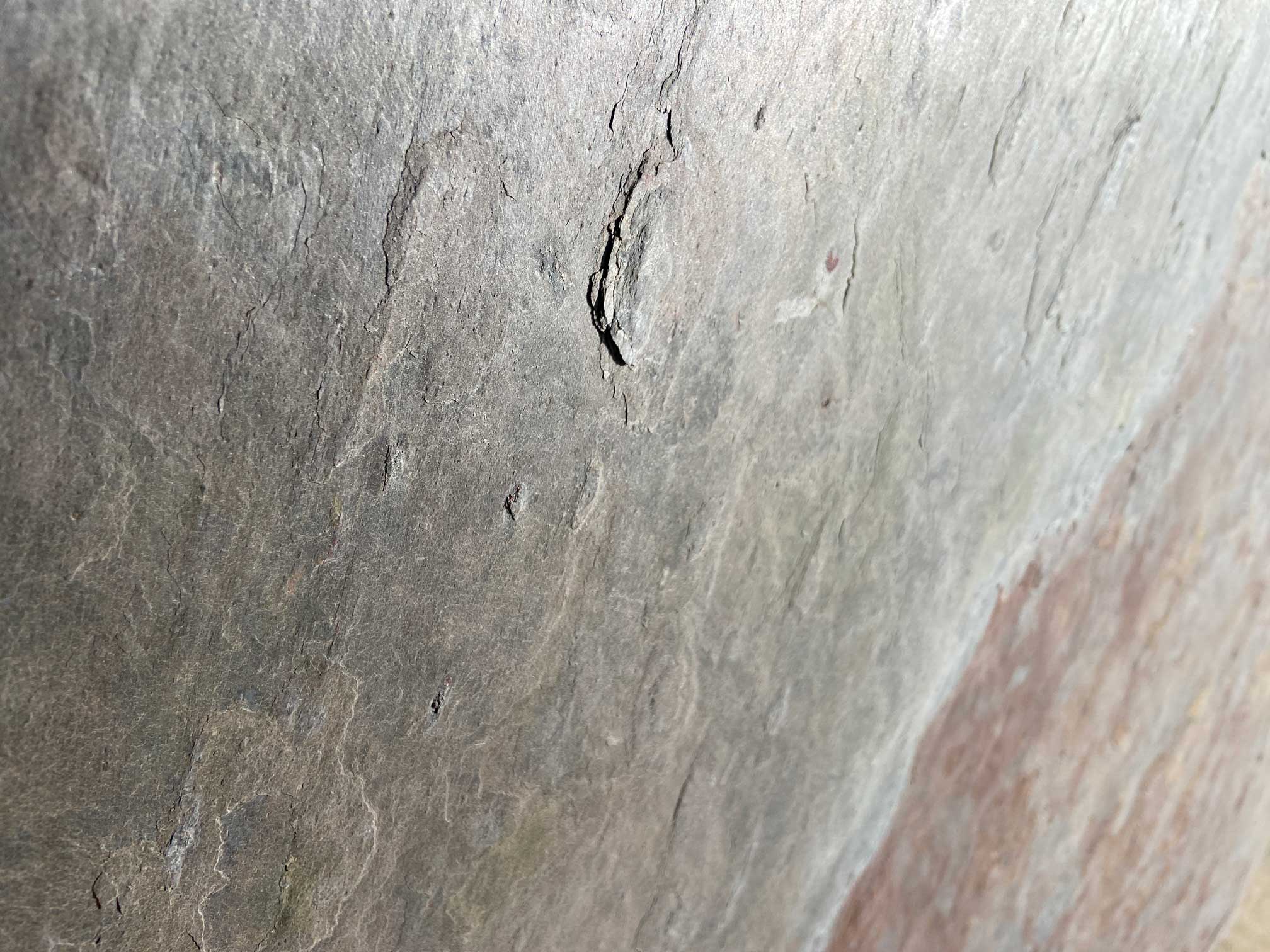 Łupek ilasty, o bogatej barwie na powierzchni, podstawa jest fioletowoniebieska. Charakterystyczne warstwowanie z wyraźnie zaznaczoną strukturą kamienia.